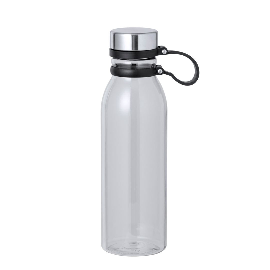Bidon en RPET de 830ml de capacité. Bouchon de sécurité fileté en acier inox et original bande de silicone pour un transport facile. Disponible dans une gamme variée de couleurs translucides. Sans BPA et présenté dans une boîte de conception kraft attrayante. Le matériau RPET est fabriqué à partir de plastique recyclé, ce qui favorise la réutilisation des déchets plastiques et contribue à la durabilité de la planète.