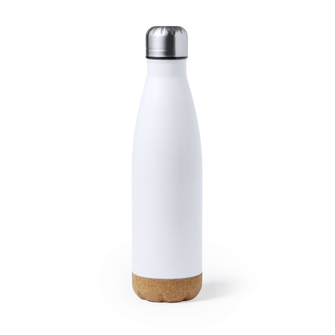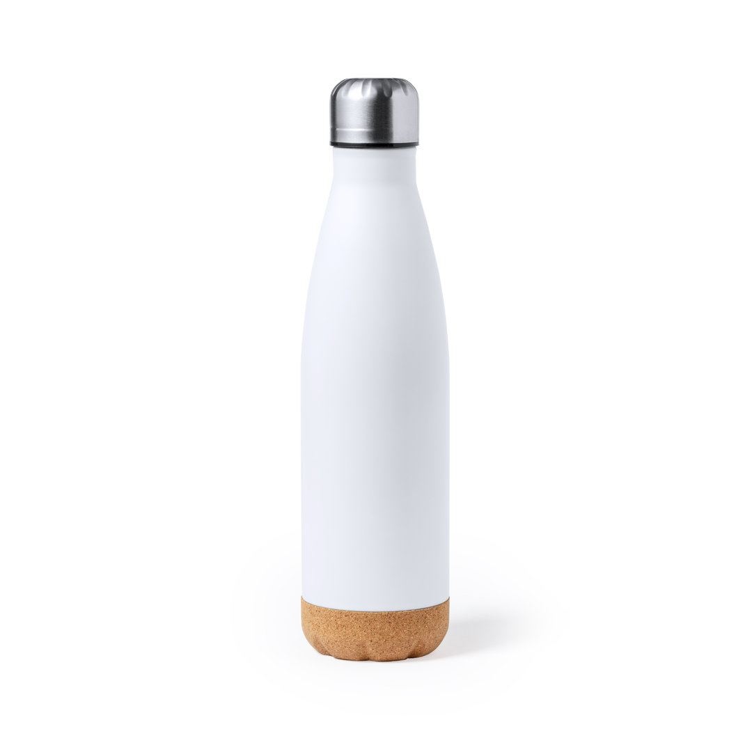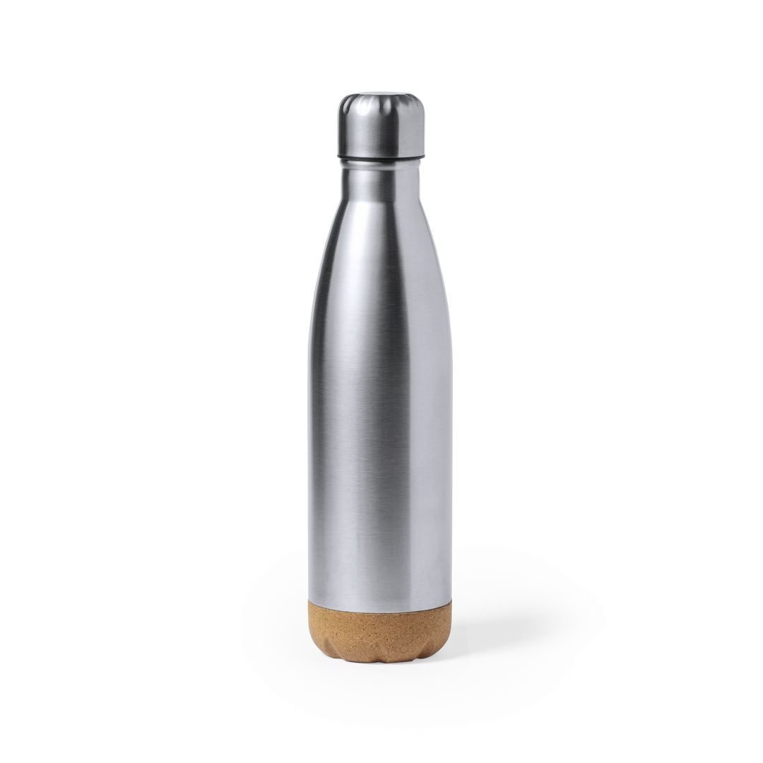 Bouteille d'une capacité de 750 ml, fabriquée en acier inoxydable. Avec une base en liège naturel et un bouchon à vis, sans BPA. Disponible dans une large gamme de couleurs satinées et présenté dans une boîte individuelle en kraft design.Manuel d'instructions disponible en espagnol et en anglais.