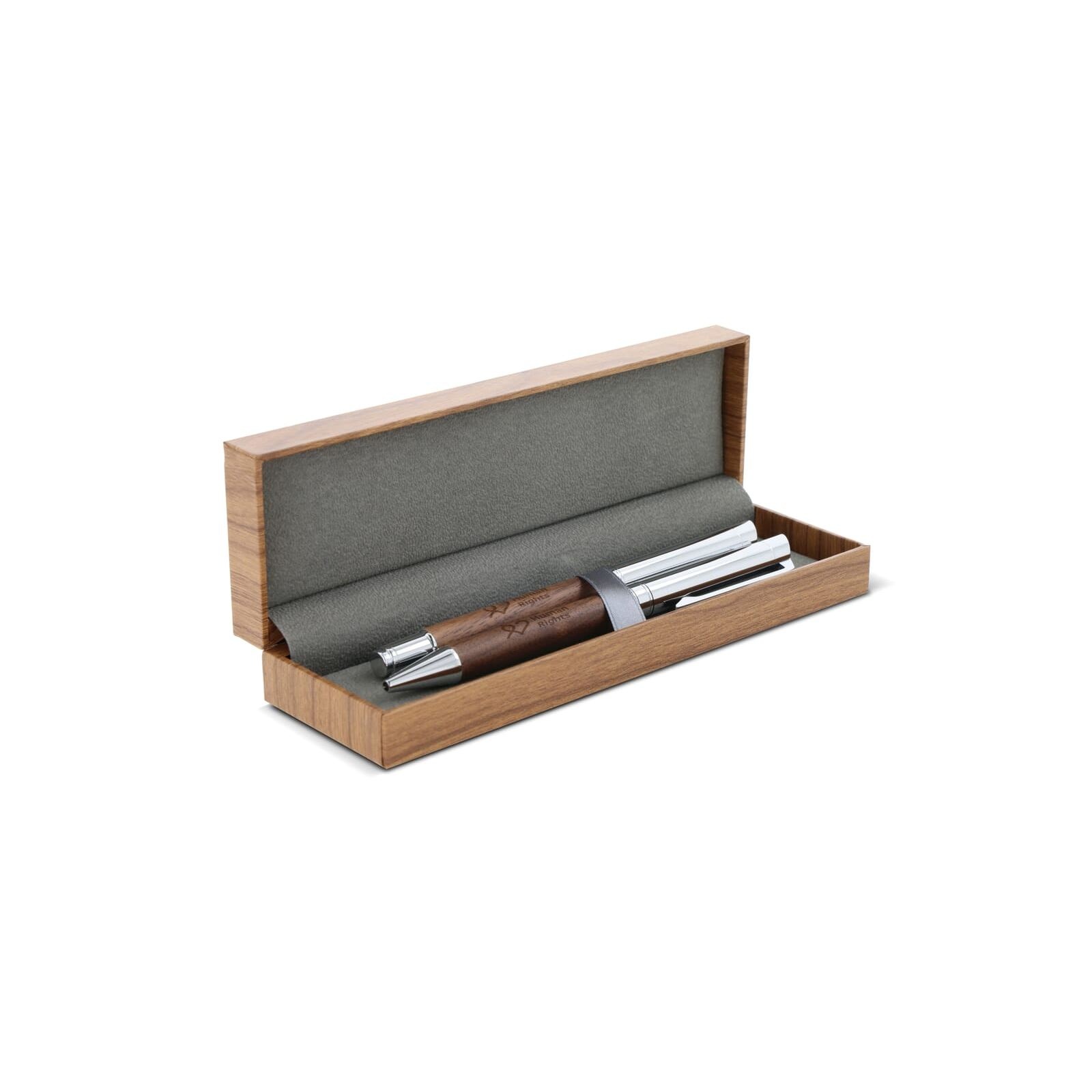 Ensemble stylo à bille et roller en métal bois de noyer dans une boîte cadeau