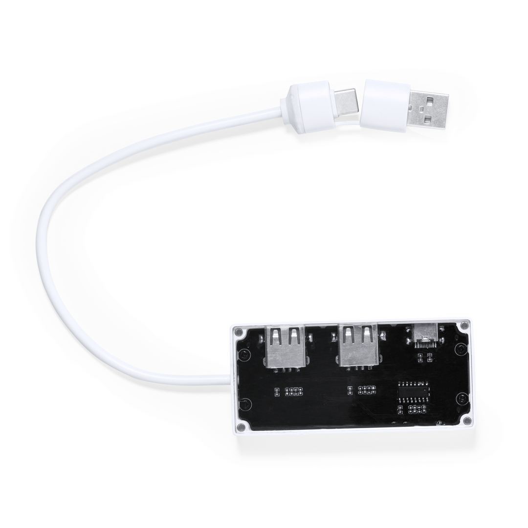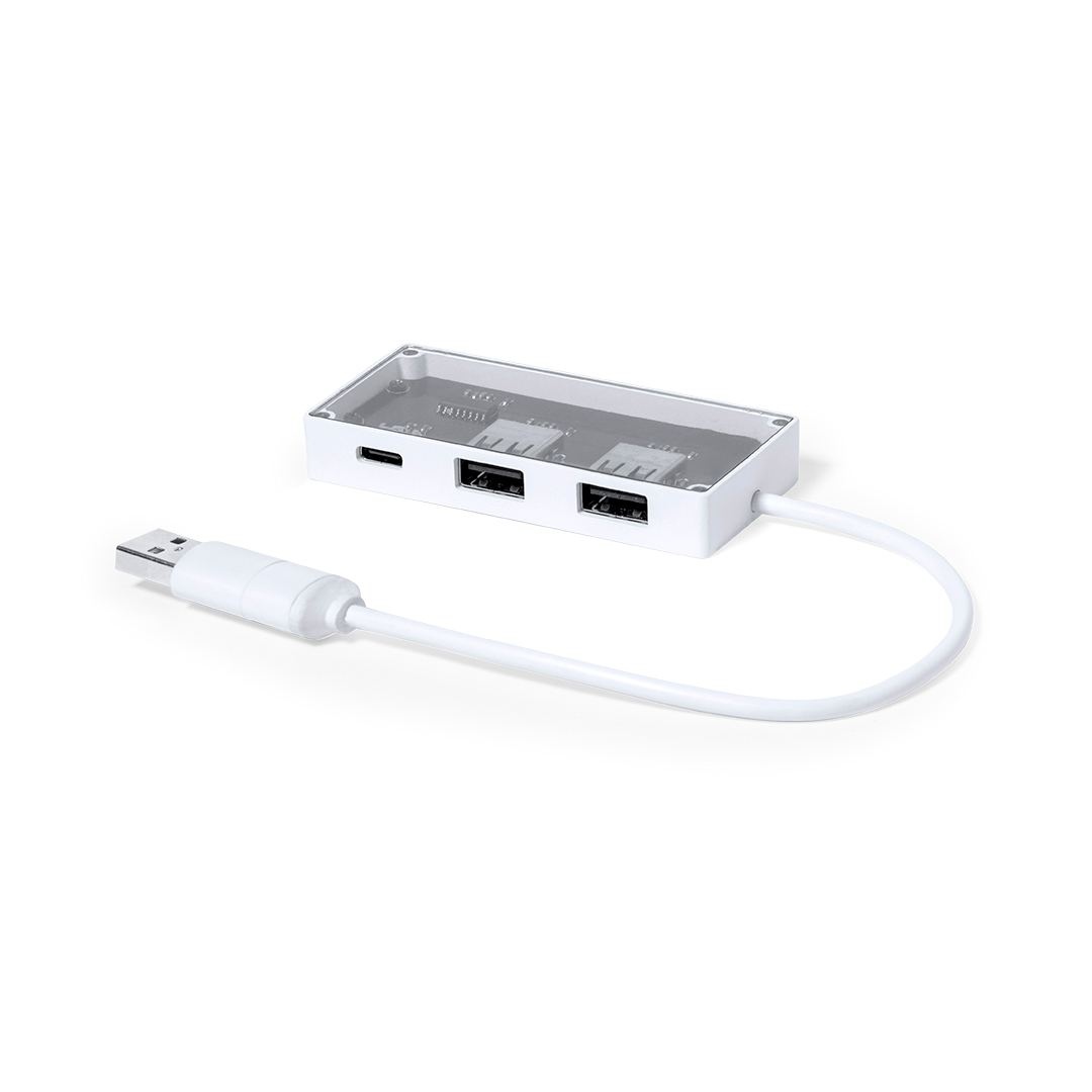 Port USB 2.0 au design distinctif transparent. Il inclut un port de type C et 2 ports USB, avec une entrée USB/Tipo C dual. Présenté dans une boîte individuelle au design kraft.Fabriqué conformément aux normes RoHS, avec un système de verrouillage pour éviter les courts-circuits.