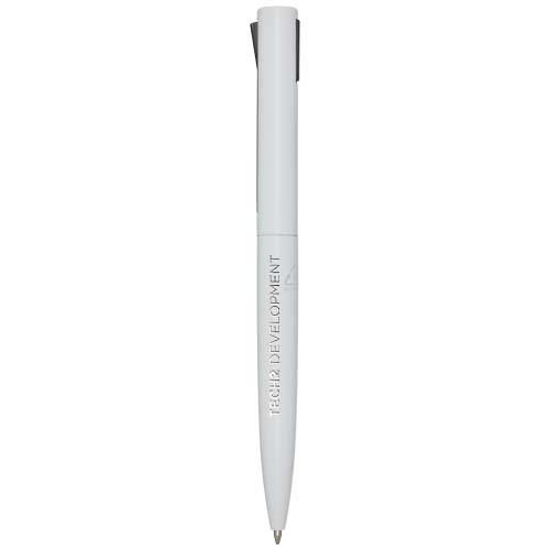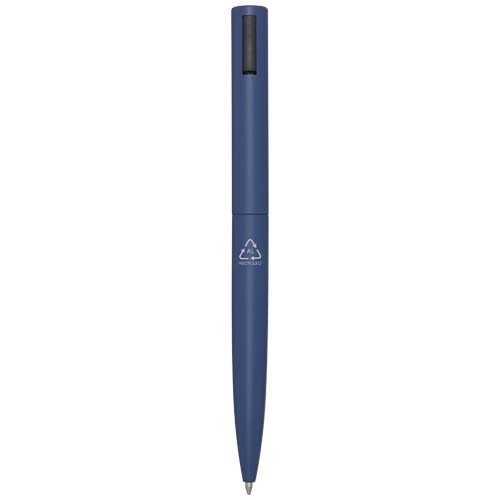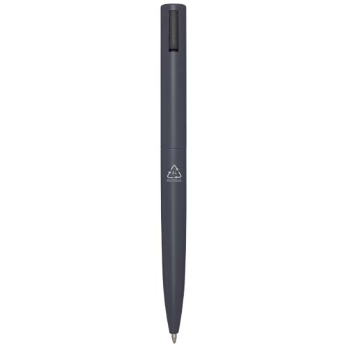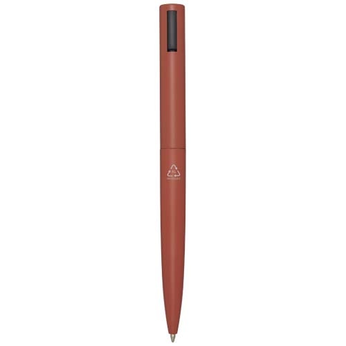 Stylo bille dont le corps supérieur est en plastique recyclé et la partie inférieure en aluminium recyclé. Le clip est en fer. Couleur d’encre : Noire. Longueur d'écriture : 1 000 mètres. Taille de la pointe : 1,0 mm.