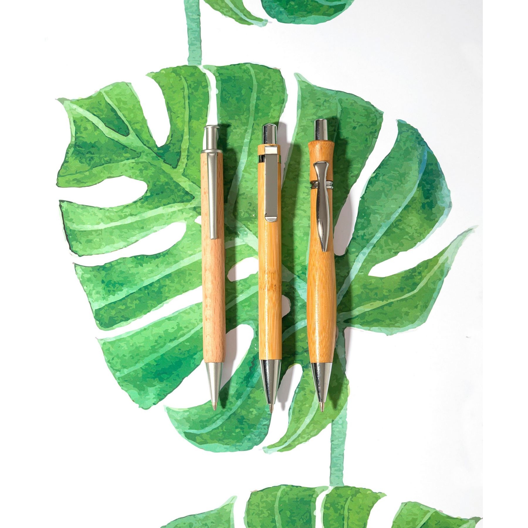 Stylo bille en bambou avec clip en métal, mine noire.