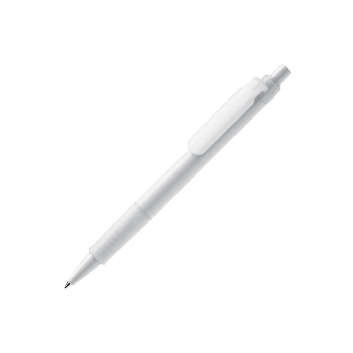 Stylo à bille Végétal, blanc avec clip coloré. Sa cartouche X20 écrit jusqu’à 2.5km, écriture par défaut bleue. Fabriqué en PLA qui est un matériau biodégradable. C'est un très bon choix promotionnel et écologique. Le stylo est fabriqué en Europe. À partir de 5.000 pièces, vous pouvez choisir vos propres couleurs.