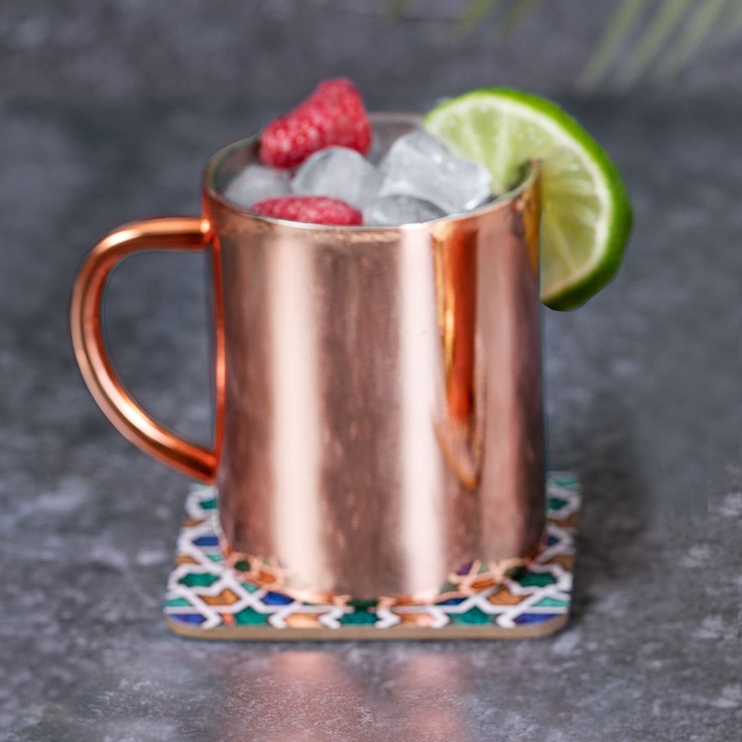Tasse de 280 ml de capacité en acier inoxydable à double paroi avec revêtement extérieur en cuivre galvanisé. Design innovant avec une finition brillante. Présentée dans une boîte individuelle exclusive au design noir.