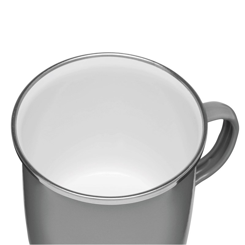 Tasse en émail VINTAGE CUP: en acier inoxydable robuste, avec anse, extérieur coloré et intérieur blanc, couronne en acier inoxydable argenté, capacité env. 350 ml