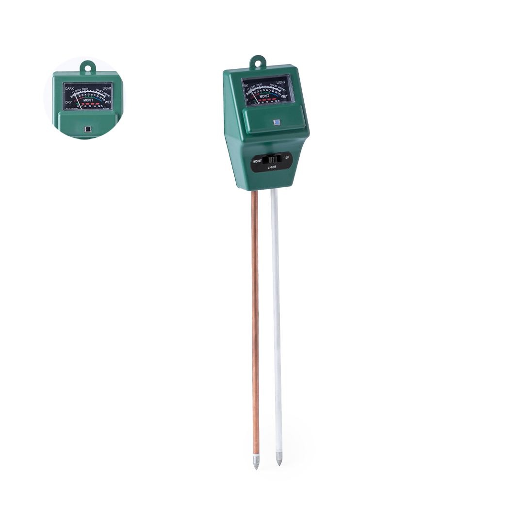 Hygromètre mesureur de sol 3 en 1, pour un meilleur contrôle de la croissance des cultures ou des plantes. Il mesure l'humidité, le pH et l'exposition à la lumière, pouvant changer de fonction à l'aide d'un bouton. Valable pour une utilisation extérieure et intérieure, avec deux sondes à introduire dans la terre au niveau des racines et obtenir des résultats de lecture optimaux. Avec des instructions en espagnol et en anglais, présenté individuellement en boîte de design kraft.