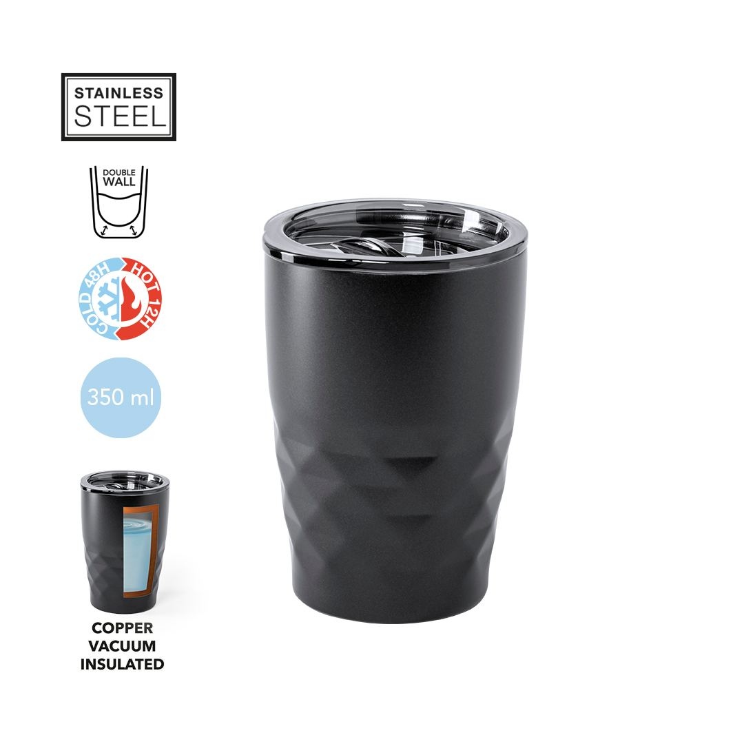 Verre thermique en acier inoxydable, avec double paroi et isolation sous vide en cuivre, d'une capacité de 350ml. Il est idéal pour votre bureau, table ou toute autre surface où vous pouvez tranquillement savourer votre boisson préférée. Il lui permet de maintenir la chaleur et le froid plus longtemps, atteignant respectivement 8 et 24 heures. Il comprend un couvercle avec doseur et enrobage facile.